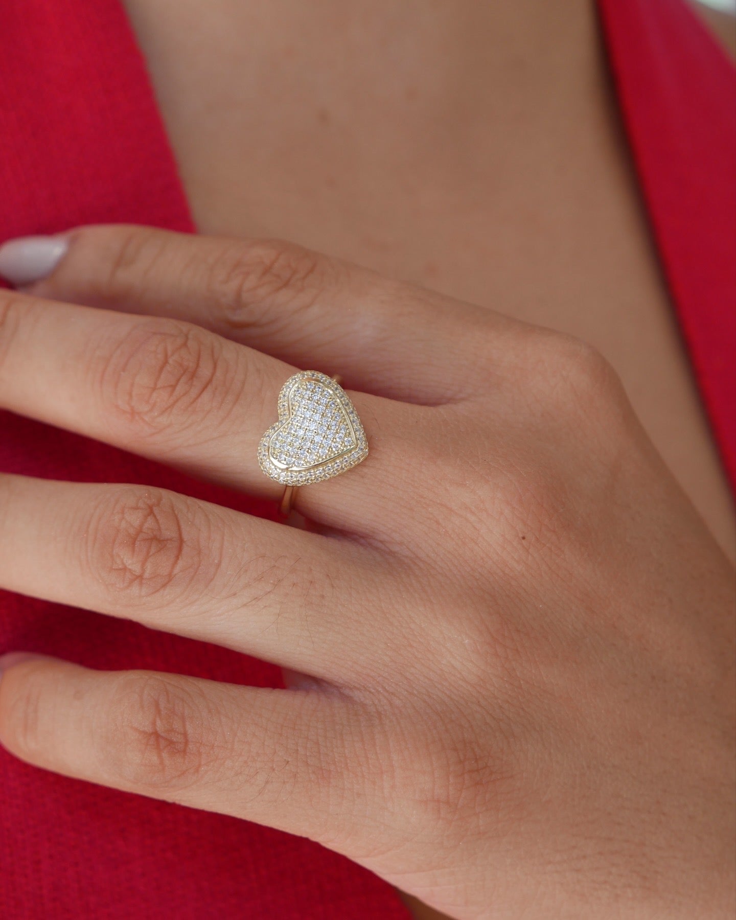 Heart Ring Pave Cubic Zirconia simulated diamond 925 Sterling Silver Statement Women's Accessories KESLEY Disco Ball Ring