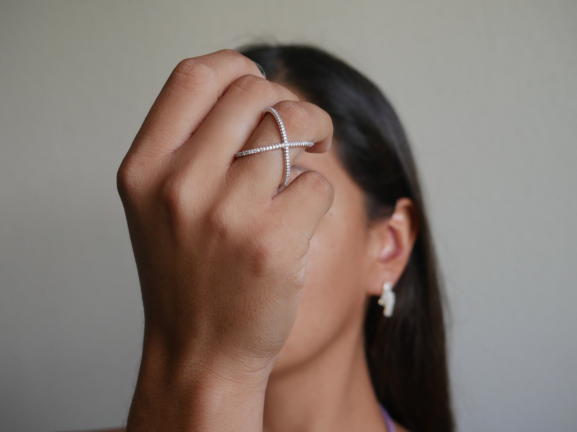 Long X Diamond CZ .925 Sterling Silver Event Daily Waterproof Ring