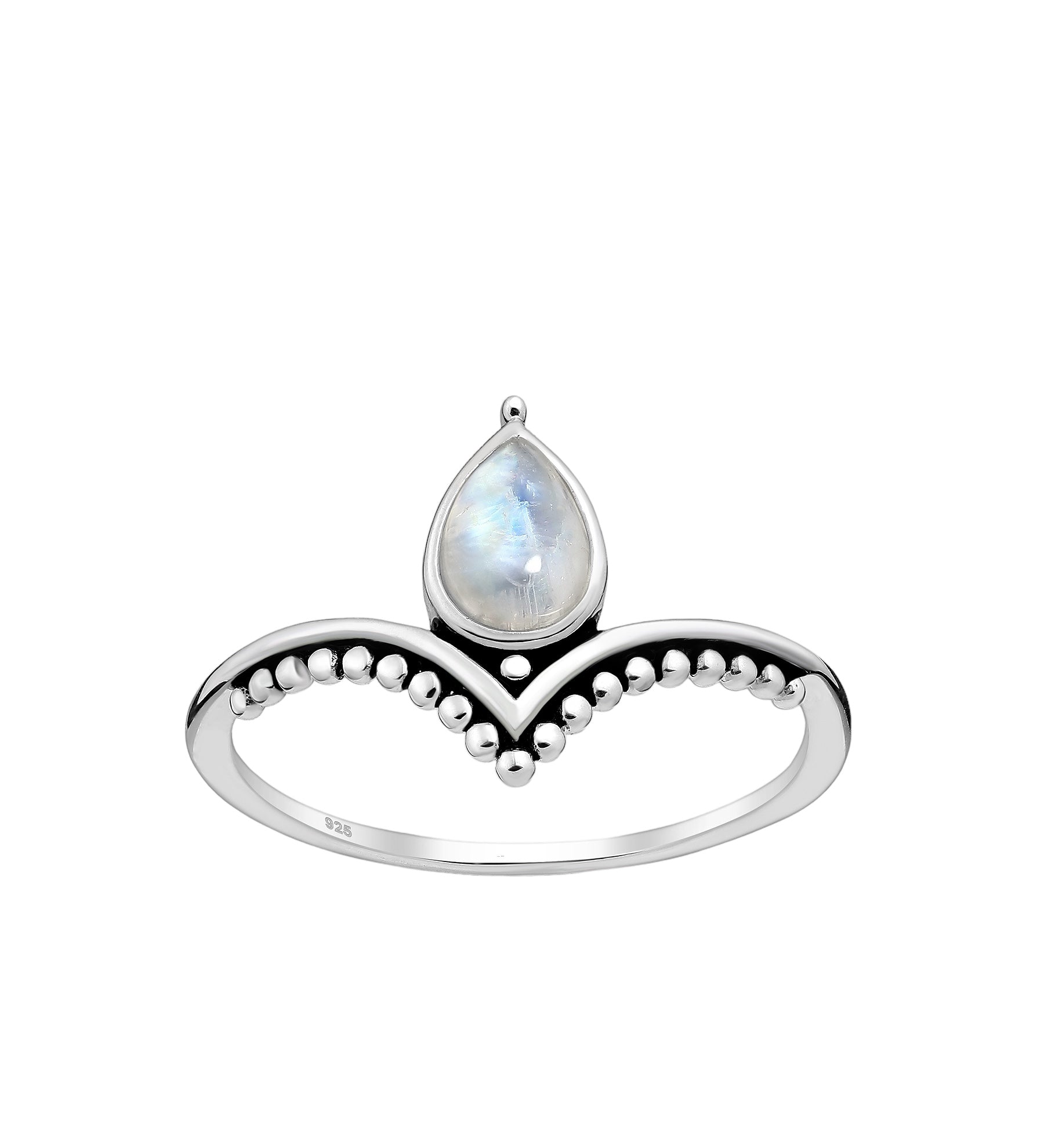 Carefully crafted with a pear-shaped chevron dainty moonstone crystal at its center, this Moonstone Silver Ring is both delicate and striking. Made from 925 sterling silver, this luxurious ring is long-lasting and resistant to water and hypoallergenic, making it ideal for everyday wear, whether you're at the beach, pool, or running errands. With its timeless silver color that never fades and high-quality materials, you can rest assured that your finger won't turn green. Suitable for any gender, this versatile ring can be worn on any finger and is also the birthstone for June.