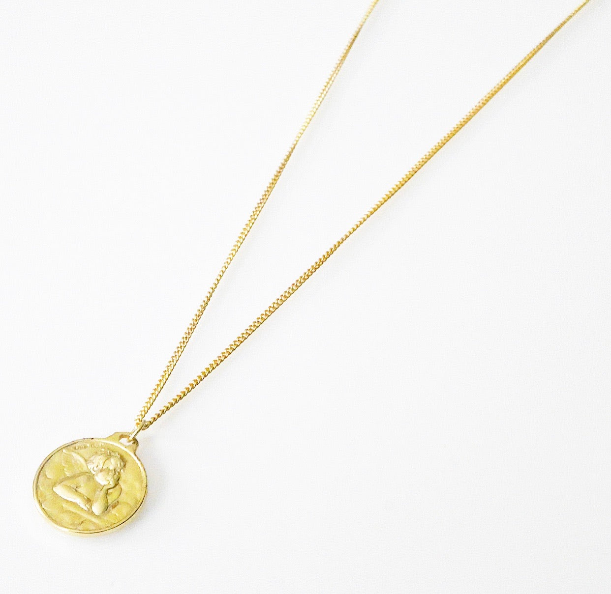 Angel Coin Necklace 18k Gold Plated 925 Sterling Silver Hypoallergenic Women's Jewelry This necklace is crafted with high-quality 925 sterling silver and plated with 18k gold, making it hypoallergenic and ideal for women with sensitivity to certain metals. Its elegant and timeless design is sure to elevate any outfit and make it a staple in your jewelry collection.