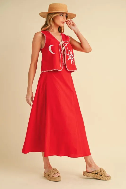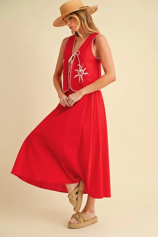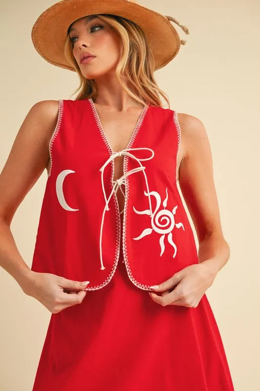 Aemi+Co Embroidered Tied Front Vest Coat