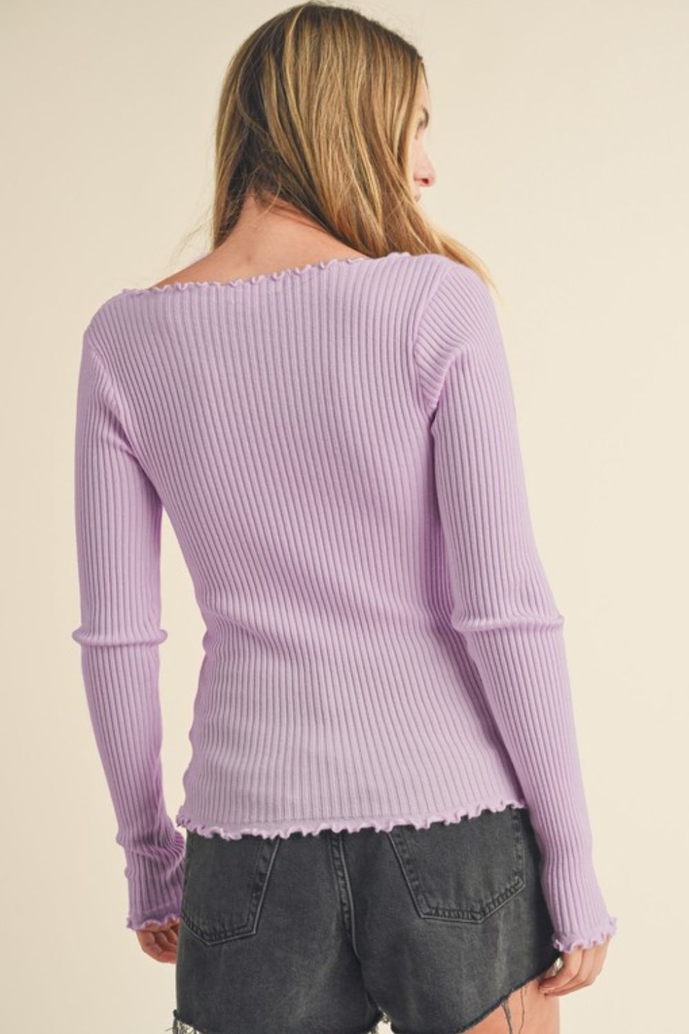 Aemi + Co Lettuce Hem Scoop Neck Long Sleeve Knit Top