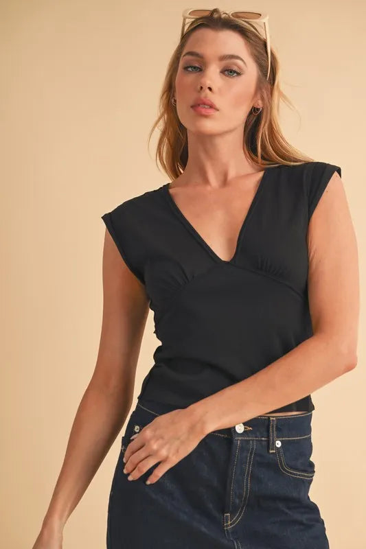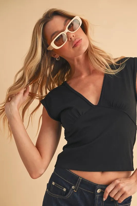Aemi+Co V-Neck Cap Sleeve Cropped Top