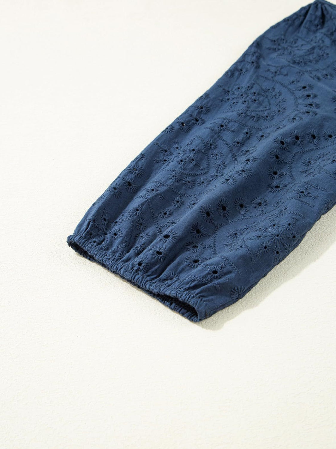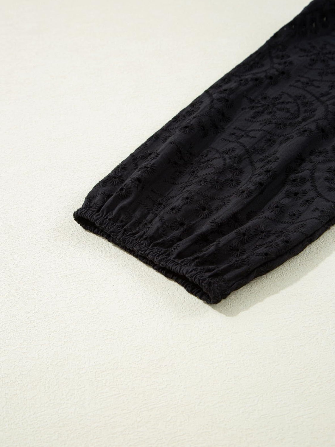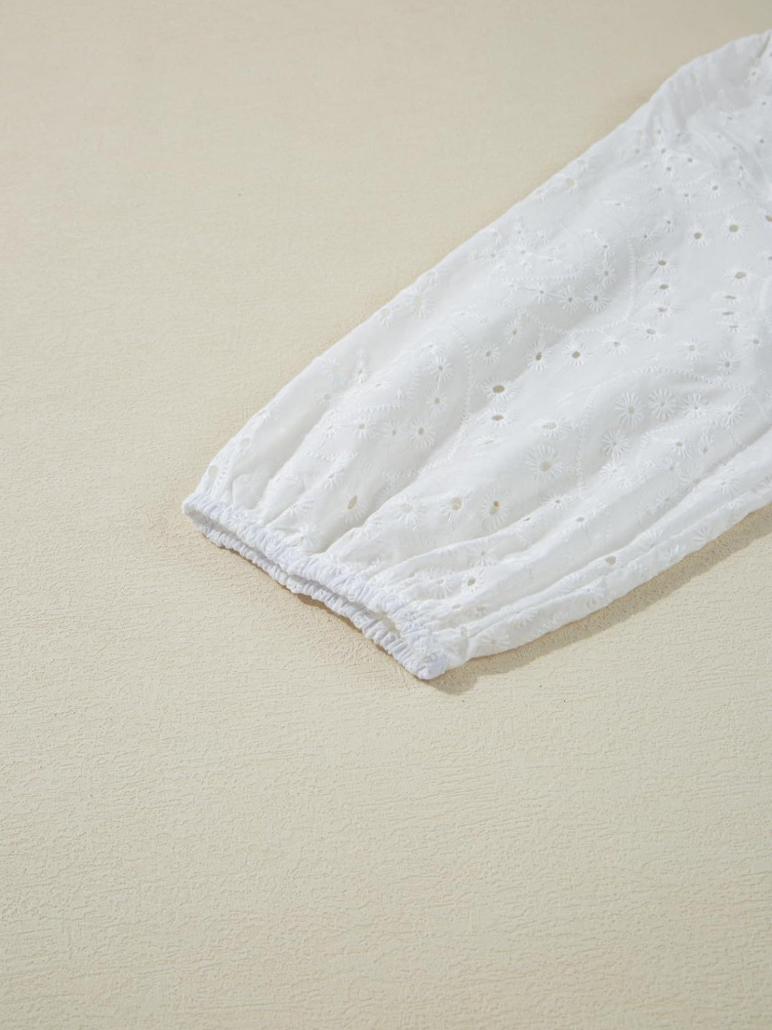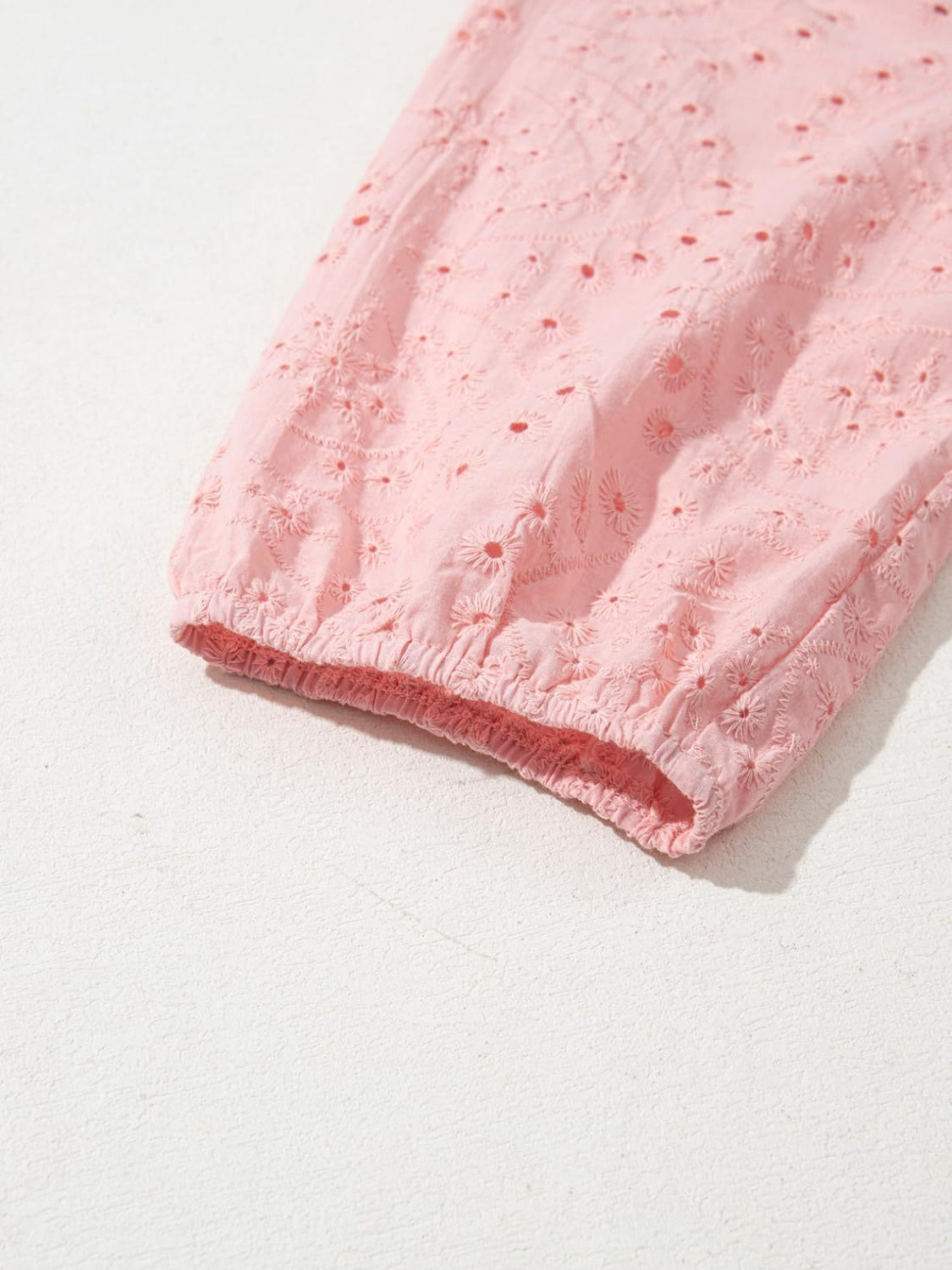 Eyelet Tie Neck Three-Quarter Sleeve Blouse