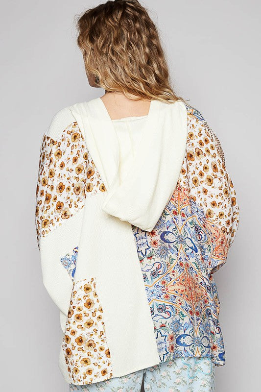 A crochet patch lace detail button floral hooded top is a charming and elegant choice. The delicate crochet patch lace detailing adds a touch of sophistication. The button detail provides a classic and stylish element to the top. With the added feature of a hood, this top offers both fashion and functionality. It is a versatile piece that can be dressed up or down for various occasions.