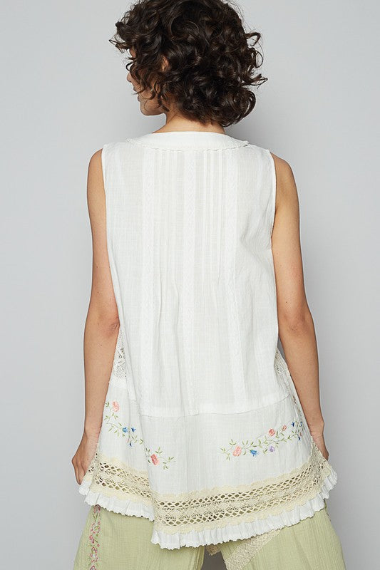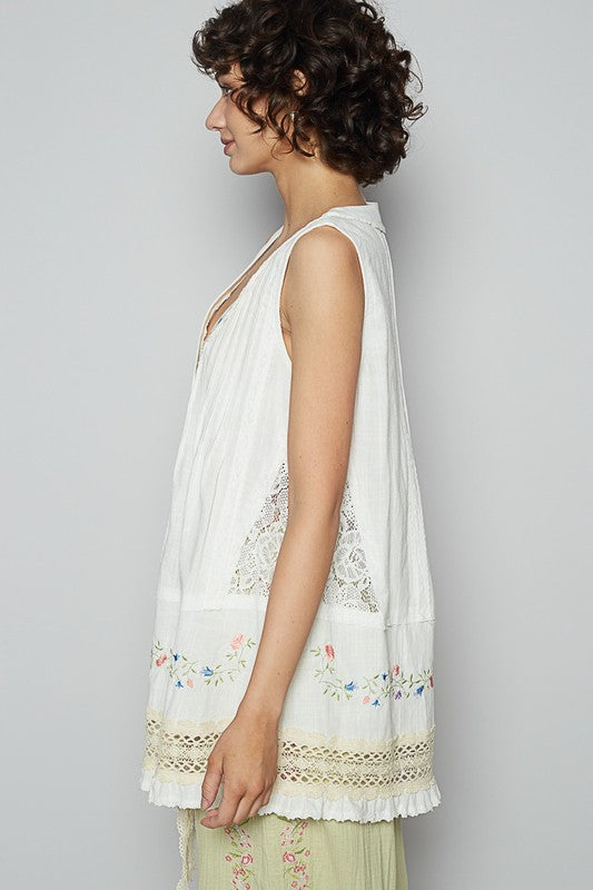 POL Embroidered Lace Detail V-Neck Sleeveless Top
